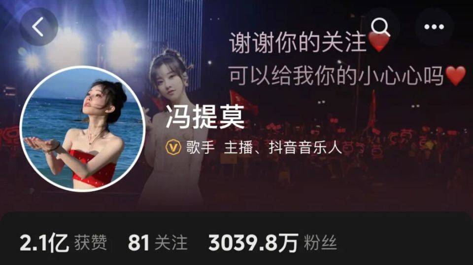 九派新闻搜索发现,冯提莫抖音账号粉丝超3039万,微博账号粉丝超1001万,人气颇高。