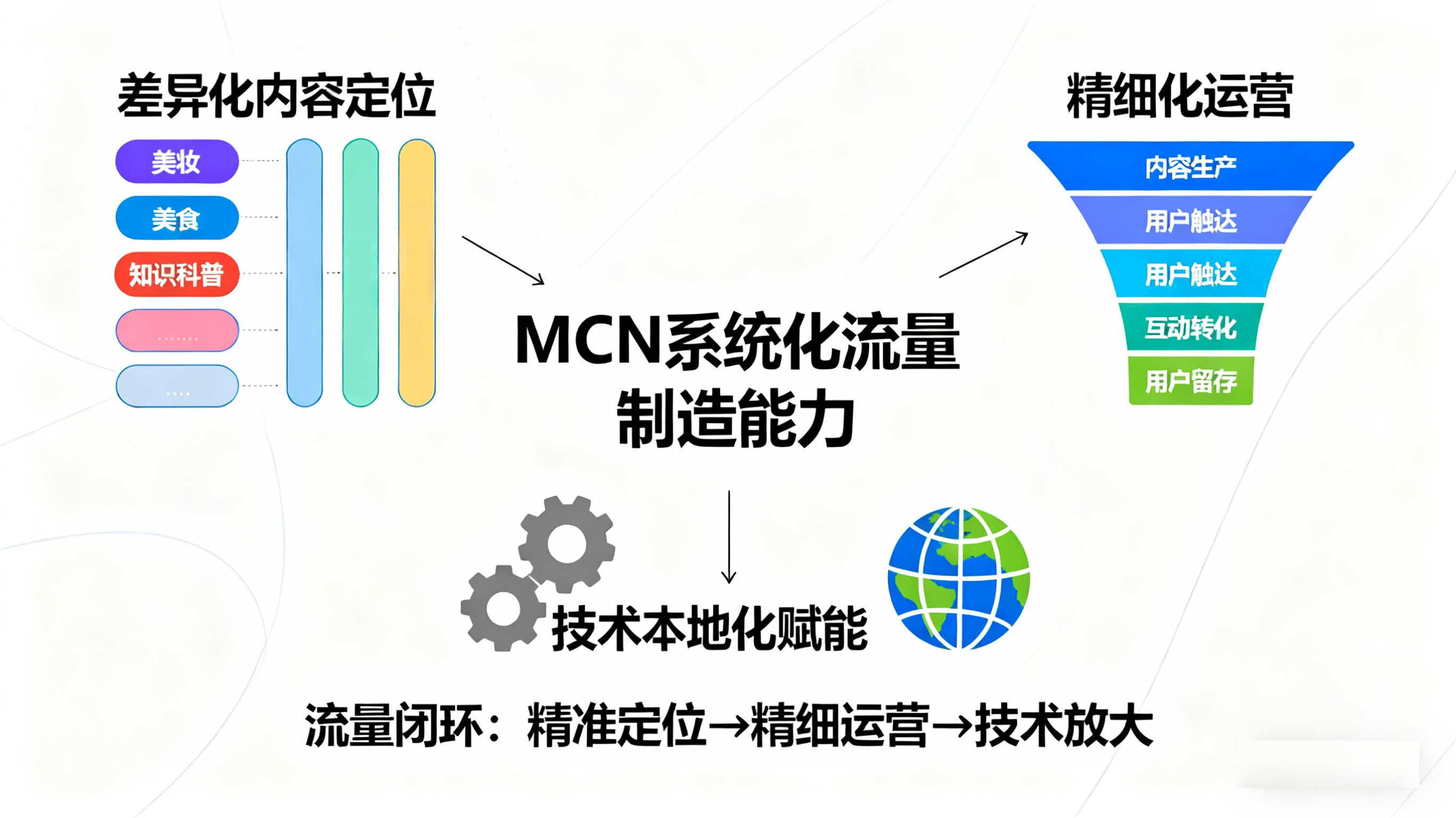 核心逻辑:技术的价值是“降本增效”,本地化的价值是“拉近距离”。MCN通过二者结合,既能提升运营效率,又能让内容更贴合目标市场,从而突破流量瓶颈。