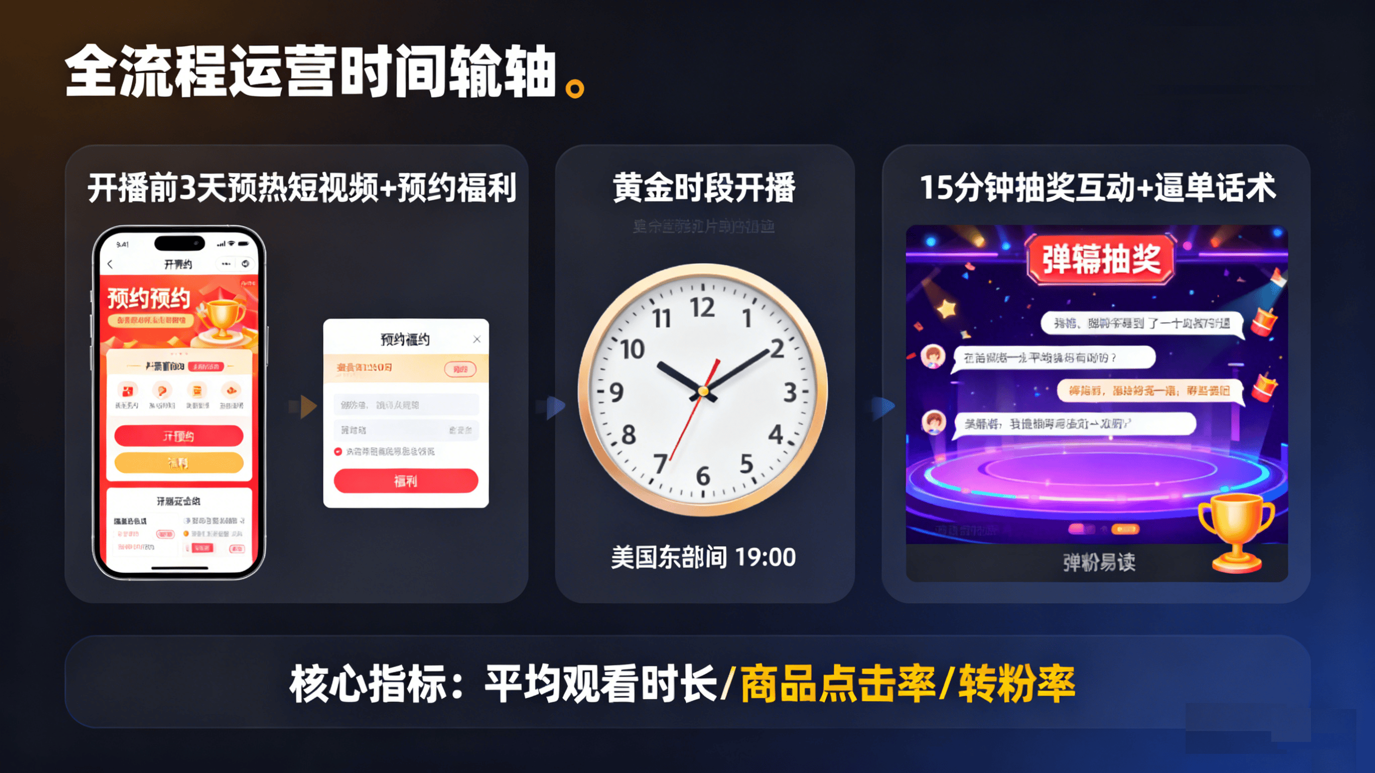 )等热门线名进直播间送优惠券”的福利引导预约,单场预约量超2000人;开播时,严格把控黄金时段——针对美国市场,选择东部时间19-22点(对应北京时间7-10点),这个时段美国宝妈群体活跃,正是其主营儿童玩具的核心受众;直播中,每15分钟设置一次抽奖互动,用“这款只剩最后20件”的逼单话术提升转化。